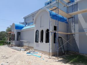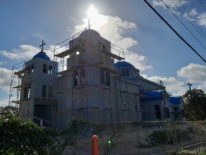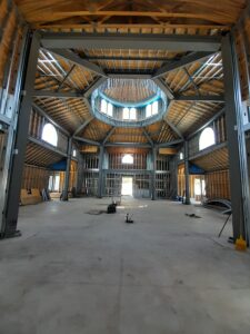 Our new St. Ephraim parish Church building is almost completely erected! And it looks beautiful! The only work left to do on the exterior in terms of erecting is the porte-cochere at the front entrance. We will continue to complete drying the building in and then begin work on the interior. But we can proudly say that most of the heavy lifting is complete for our Church building project.