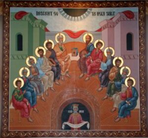 The Holy Spirit that Christ had promised to his disciples came on the day of Pentecost (Jn 14.26, 15.26; Lk 24.49; Acts 1.5). The apostles received “the power from on high,” and they began to preach and bear witness to Jesus as the risen Christ, the King and the Lord. This moment has traditionally been called the birthday of the Church.